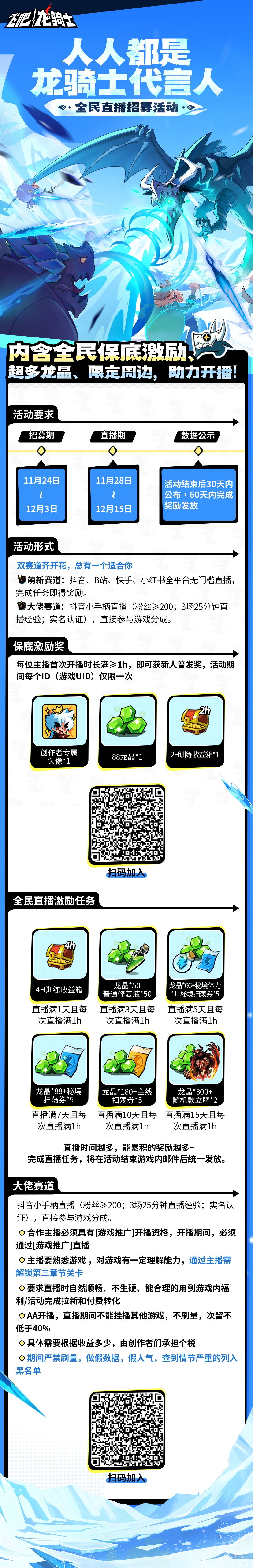 招募期:2023年11月24日——12月03日直播期:2023年11月28日——12月15日