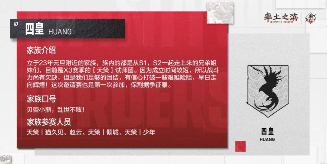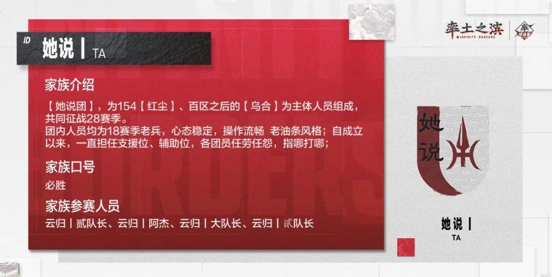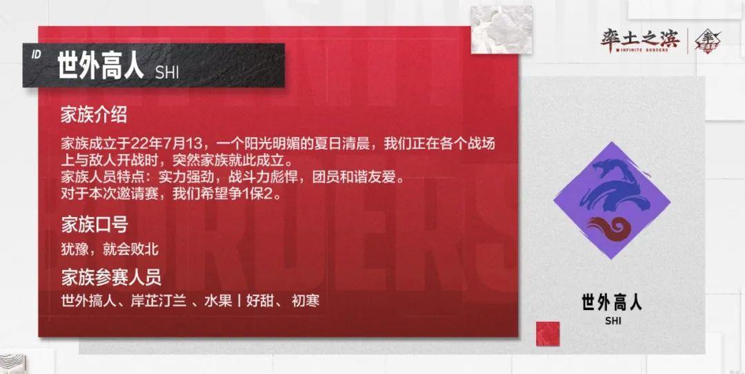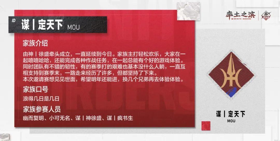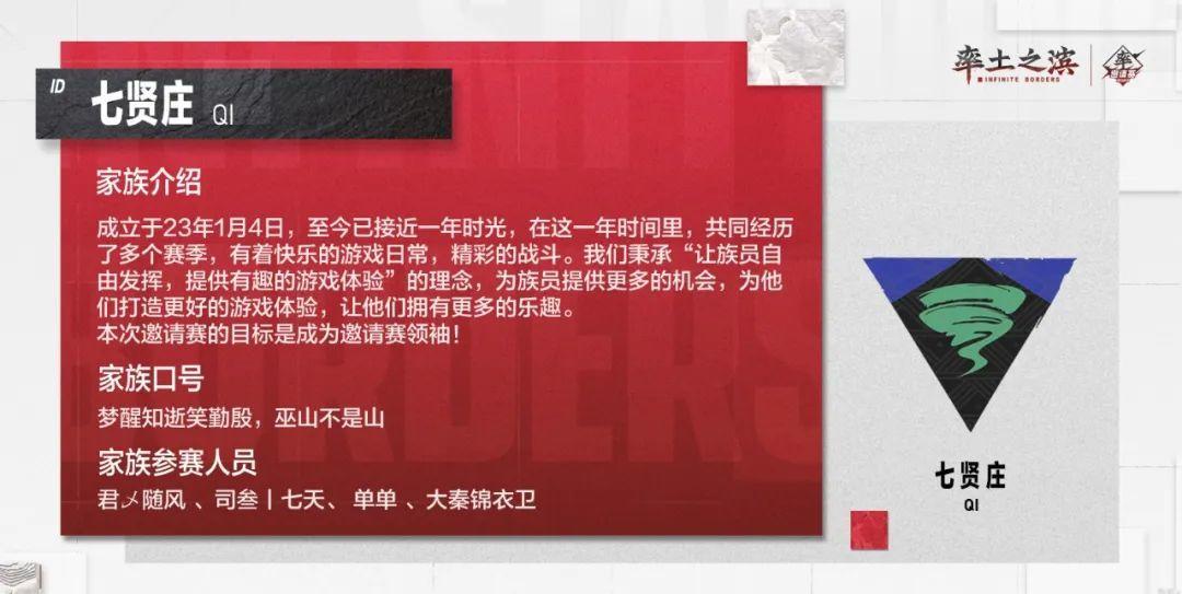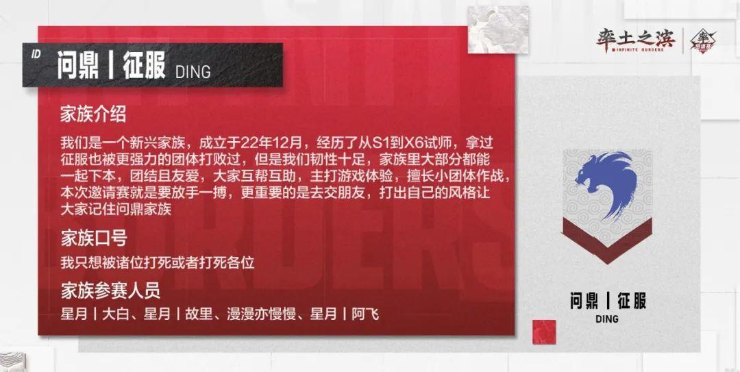 以上是部分参赛家族的风采展示,快来为自己的家族加油鼓气,同时也期待各位家族在邀请赛中的精彩表现!