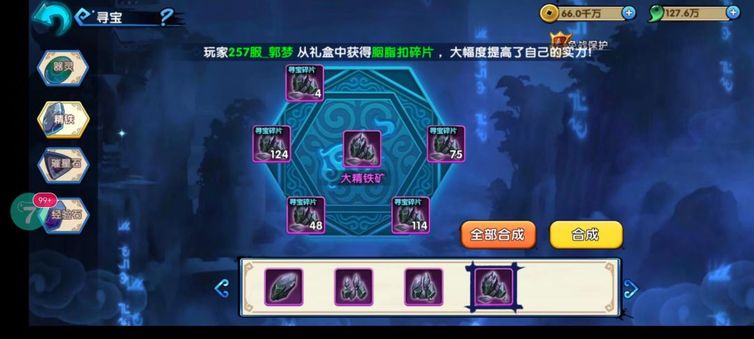 大家好今天给大家带来的是寻宝,寻宝主要分为七个部分,分别是器灵、精铁、璀星石、经验石、夺宝判断、免战保护、休息时间七个部分,下面就由小编为大家一一介绍下