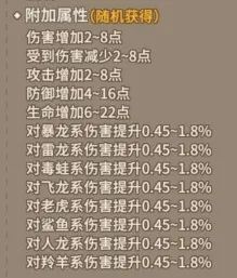 装备品质越高,属性附带种类越多,加成更高。