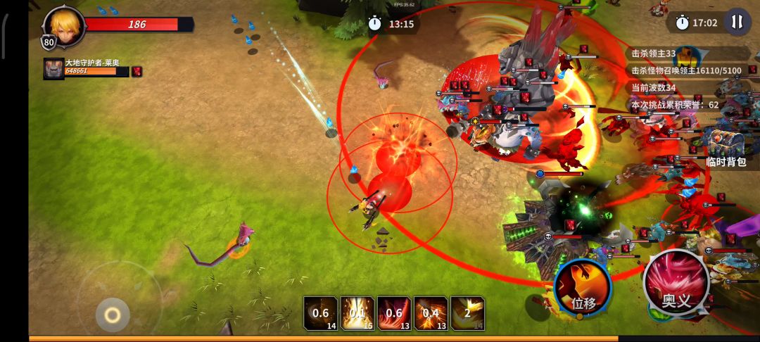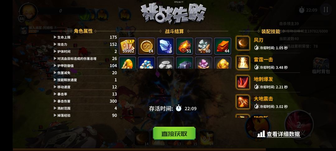 选的猛击技能,后面范围超大,堆范围堆冷却堆连击,风刃增加刃数,后面几乎无冷却嘎嘎一片扫过去。移速也很重要,不然后面跑不过小怪精英怪的技能,比boss还恶心!不得不吐槽,升级选完技能时候人物就要僵硬一下,太烦了,得改进!