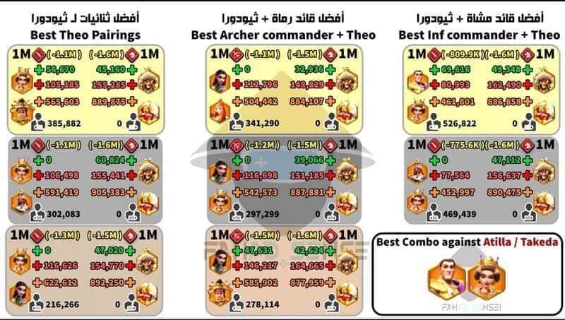 在没有李舜成和狄奥多拉的情况下,这个组合是勉强可以抗衡阿提拉+武田的选择之一。当然在KVK的攻击力BUFF加成下,实际的结果可能还是略微亏损。