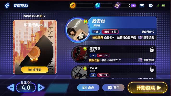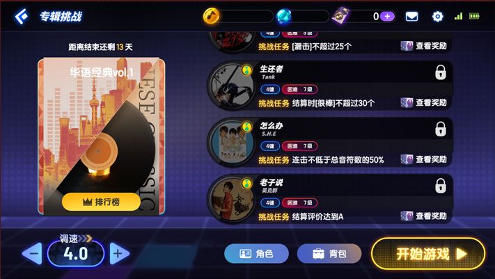 专辑挑战小攻略:本专辑难度适中,演奏家们可以在挑战的同时尽情地享受音乐,感受我们华语歌曲的无限魅力。在专辑挑战当中,合理使用不同道具和角色去挑战不同的歌曲时,能够使各位演奏家能够更加得心应手噢~希望大家在本次的专辑挑战中收获到专属于自己的独特体验~小师妹等着大家分享通关感受嗷~