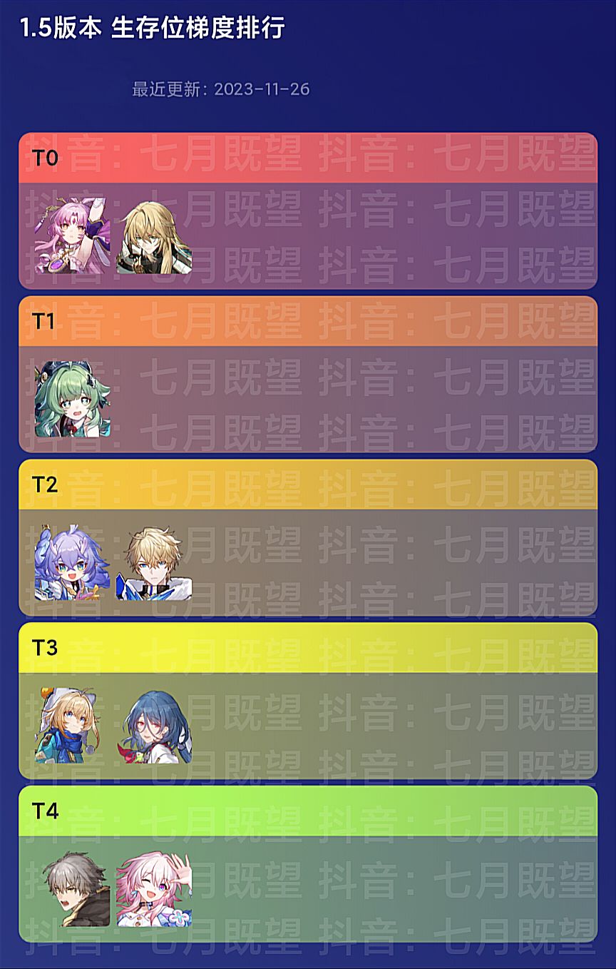 1.5版本崩坏星穹铁道 生存位梯度排行