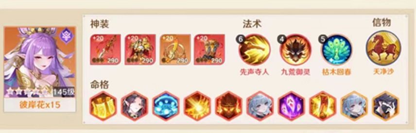 阵容组成:3觉千手妖姬,3觉白骨夫人,主角变觉醒千手妖姬,谛听,3觉孟婆,三觉彼岸花