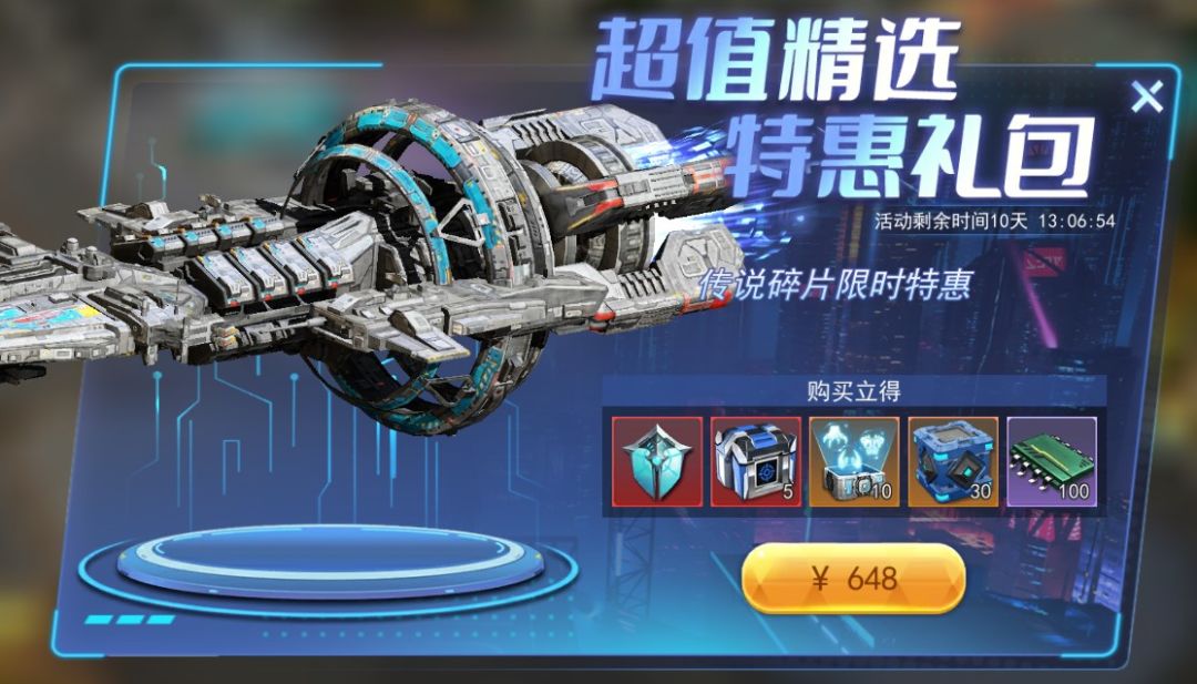 活动二、超值精选-特惠礼包活动时间:一周活动内容:可获得传说战舰兑换道具及价值1万钻石的稀有芯片及异兽装备道具。