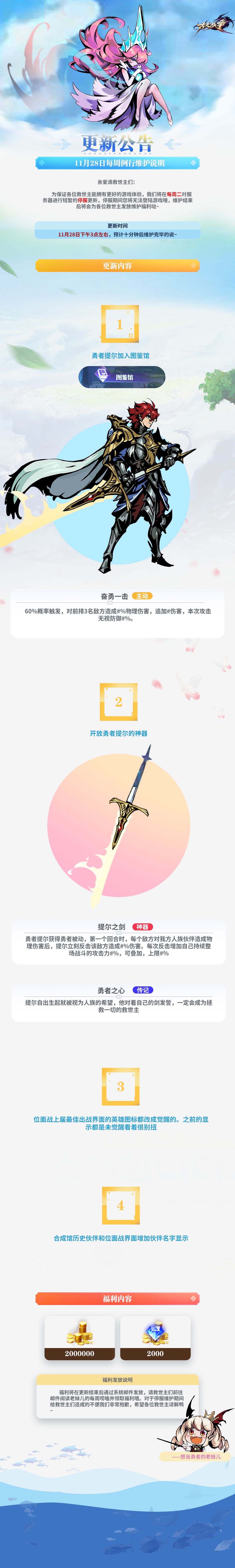 【更新公告】11月28日每周例行维护说明(=´ᴥ`)