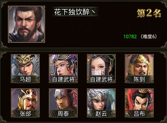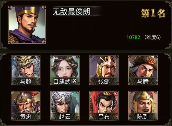 马超、张郃、马腾、黄忠、赵云、吕布、陈到、周泰、诸葛亮 和 一位自建武将