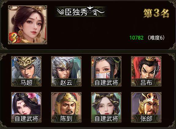 臣独秀 军团配置的武将有: