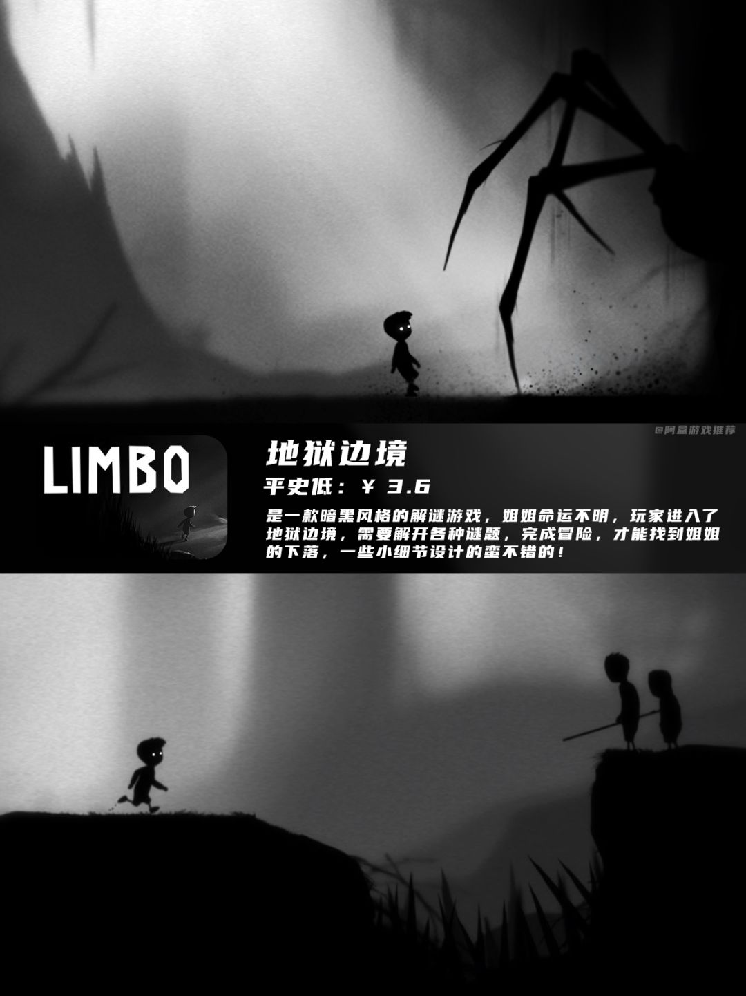 阴暗的解谜冒险游戏,玩家需要前往地狱边境找到姐姐的下落,小细节设计的都很不错,真的很治郁