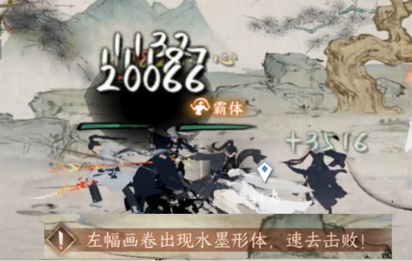 离开画卷的队伍,在攻击本体时会有墨点化形这个机制需要我们及时去踩,不踩的话会增加小怪伤害很高。