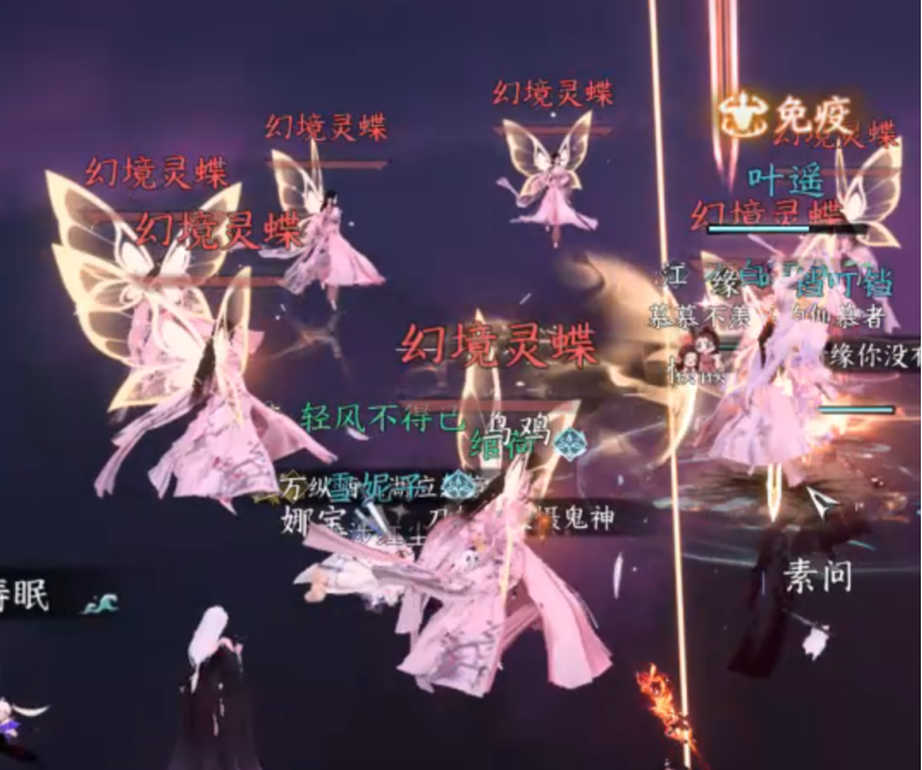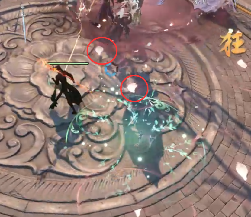 小怪机制“尘蝶一梦”这里最好提前分配好弹反的玩家,黄圈太多了容易乱,其他人则是去打蝴蝶,掉落了翅膀就赶紧拿了在空中去打南问雪破盾(打的时候记得选中一下)