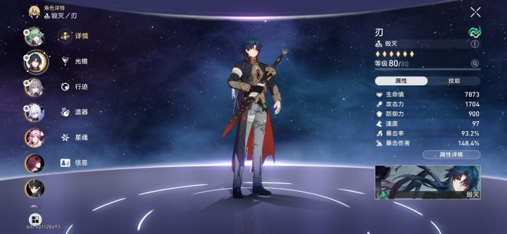 反观刃,0+1满爆“爆伤太低了,提升空间巨大”,带二命玲可,0+0鸭鸭,三回合就能逆属性砍爆十层上。