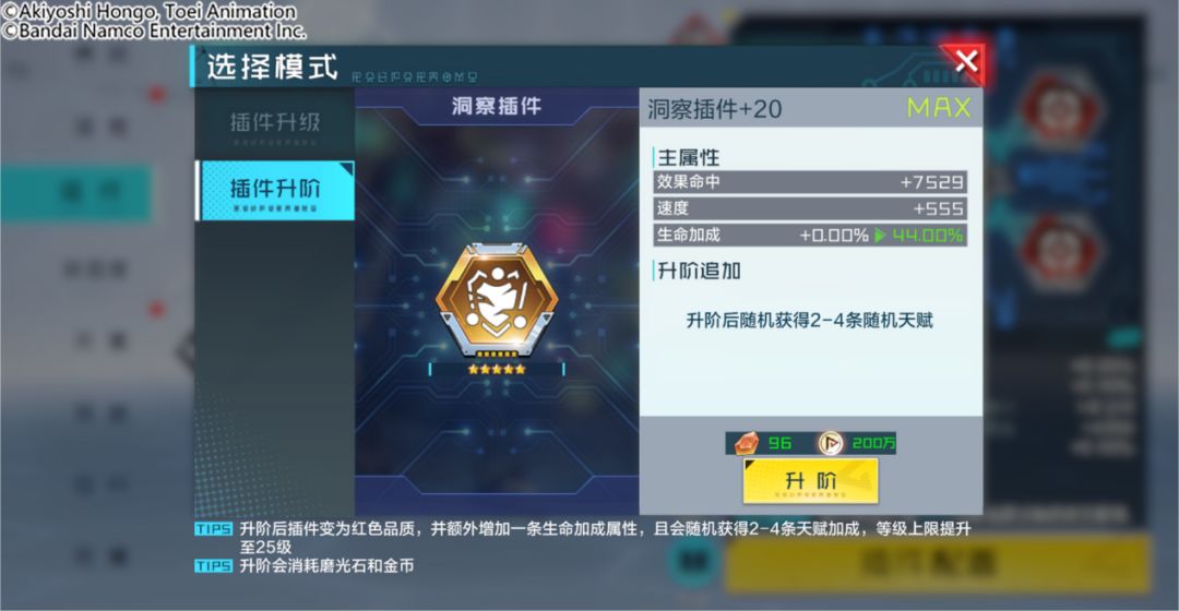 (1)磨光石与金币是升阶的主要材料,可以将橙色5星核心插件阶为红色核心插件