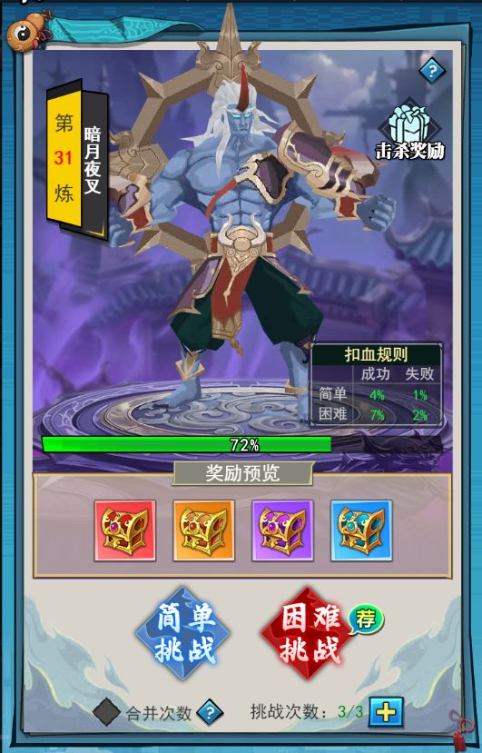 3、玩家可以根据自身实力斟酌选择普通挑战和困难挑战