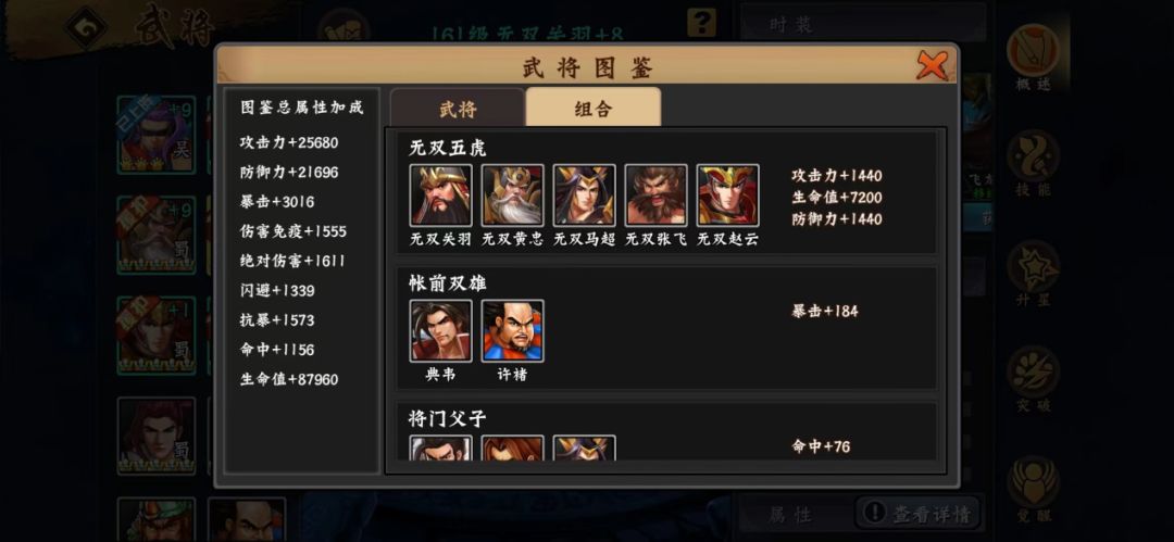 无双关羽连击流畅,副本使用能够打出较好的连击。或许是因为无双关羽全火将,用火书会有一点点加成或是带其它增益特性,如今攻城略地很多玩家也会选用无双关羽出战。
