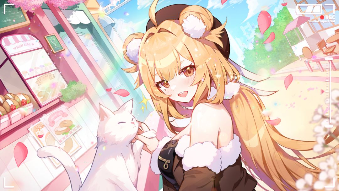 “哇,小猫主动靠过来了,好可爱。快快,帮我拍张照片!”