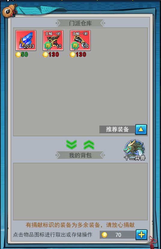 玩家捐献物品至门派仓库后即可获得【门派玉】,使用门派玉能够领取门派仓库的物品!