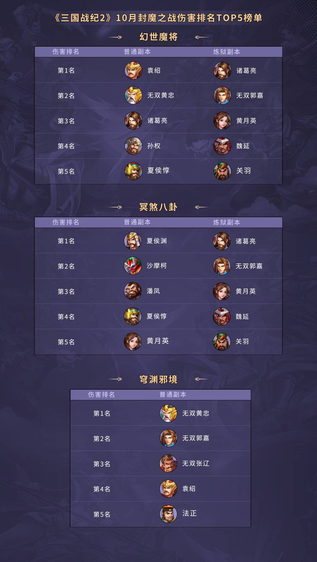 十月武将PVE榜单数据