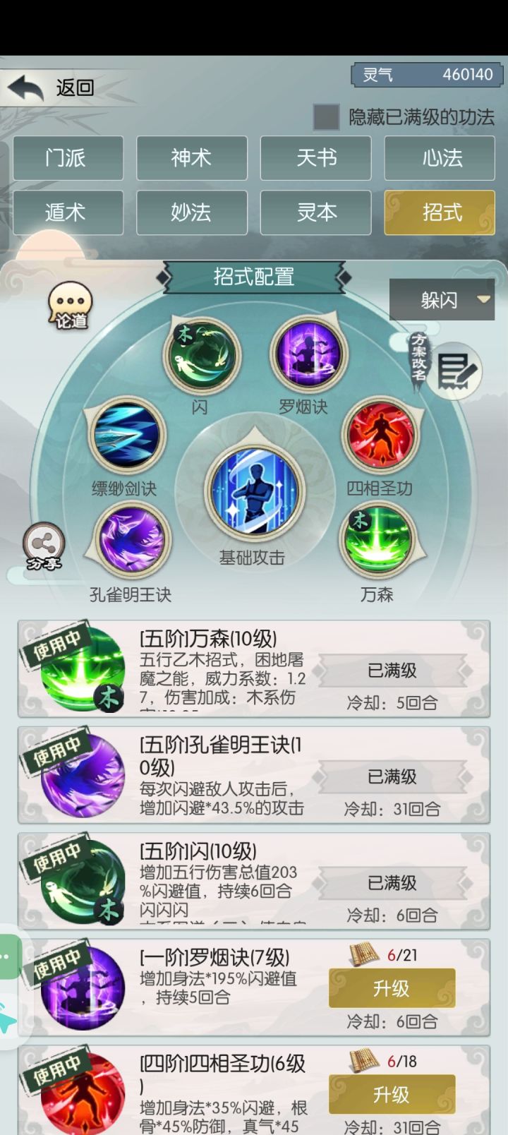60万主五偏低,所以本王没带斗转,而是带了个四相神功提升攻击,因为卡威望值直到昨晚才买的主五招式(因为本王前期主五太低,攻击收益不如真气,所以第一个10W威望招式选择换五鬼迷踪来更好的过图及pvp)。换上主五技能后之前一直卡住