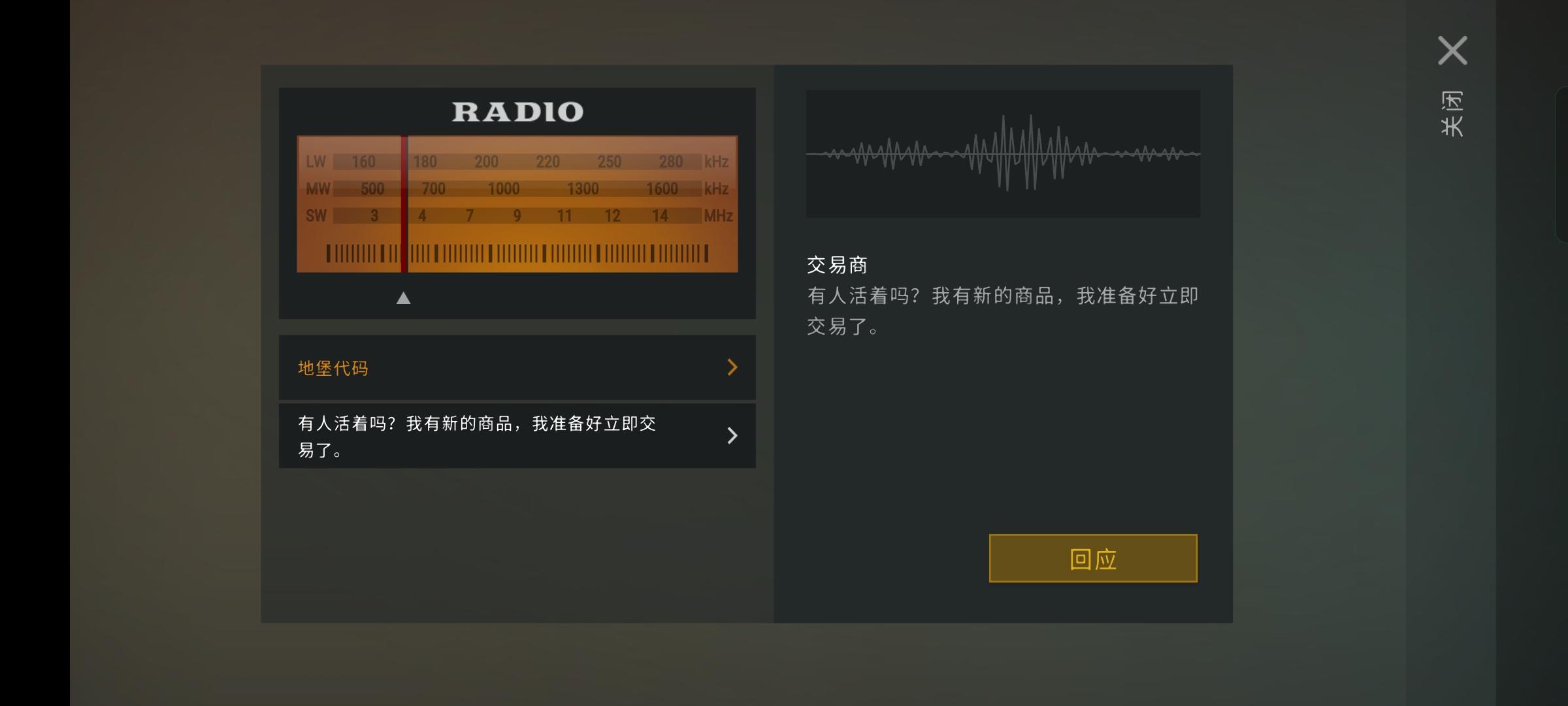 建议别回应,一直留着。每日随机刷出的商人看收音机就知道要什么了,不用来回跑。而且随机商人消失后收音机里的商人还在,可以无限使用