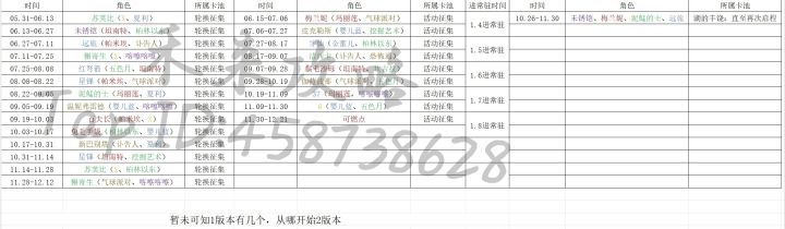 如图所示,目前轮换池开启了二轮复刻,星锑二轮复刻后是苏芙比,苏芙比二轮复刻后是槲寄生,而非未锈铠,也非远旅,结合目前四合一池还没关,推测泥鯭的士可能也会跳过。