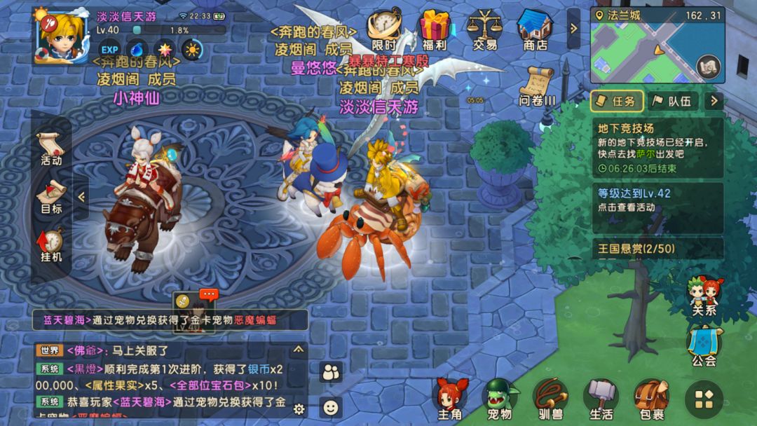 2,美术问题,我其实能接受目前美术,但是有些宠物的细节做的没隔壁好,有些做的还不错,比如牛头,螳螂 ,对应的元素特效也应该与其元素属性像符合 比如宠物用冰属性的 出去的就应该类似法师的冰冻魔法,也不麻烦,最后美术的视角做成可调节的吧,最后一天在东门合影,视角拉不上去,挺遗憾的,看不到法兰东门全景,起码可以和你们官方CG一样有那种大视角