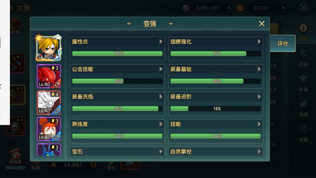 麻烦把所有技能,属性的变化,不管是宠物技能,天赋,还是数值,都和战力挂上一个对称的比值或者公式,部分不好判定的技能,按升一级加固定战力都行!养成的乐趣就是看着战力每天能涨一点,而不是咔咔咔一顿养成,战力几乎没变化,好好学下其他游戏的战力数值(不是要你走数值膨胀那一套啊!切记)