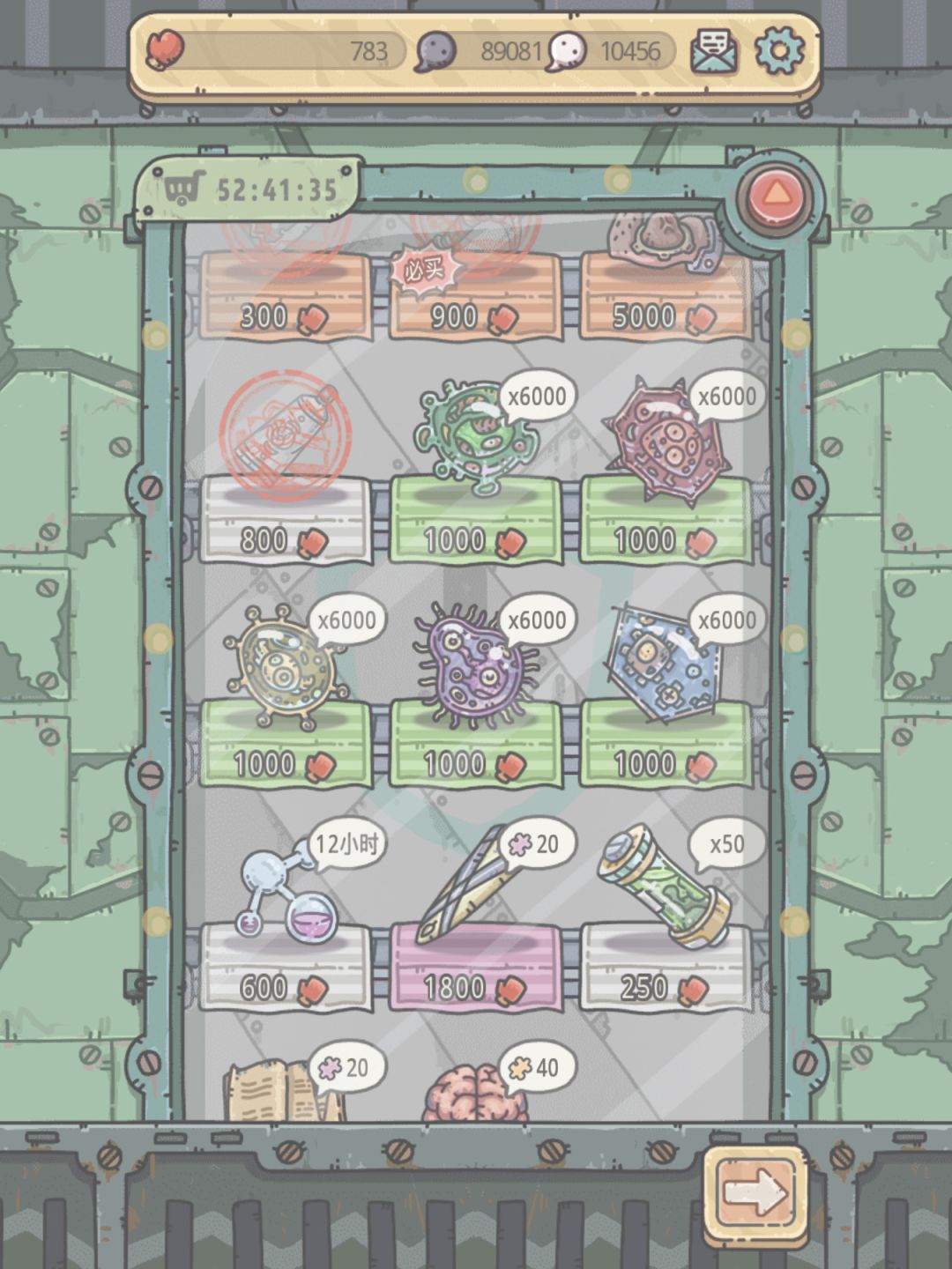 这里需要关注的物品:稿子,粘合剂,抽奖券,自己没有的贵重和器官。以及缺的时候可以买的细胞,基因加速。