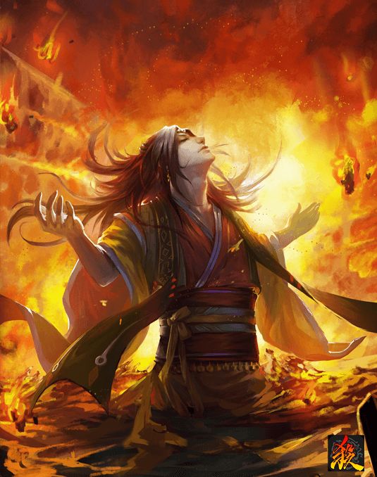 “业炎”:限定技,出牌阶段,你可以选择至多三名角色,对这些角色造成共计至多3点火焰伤害(若你将对一名角色分配2点或更多火焰伤害,你须先弃置四张花色各不相同的手牌并失去3点体力)。