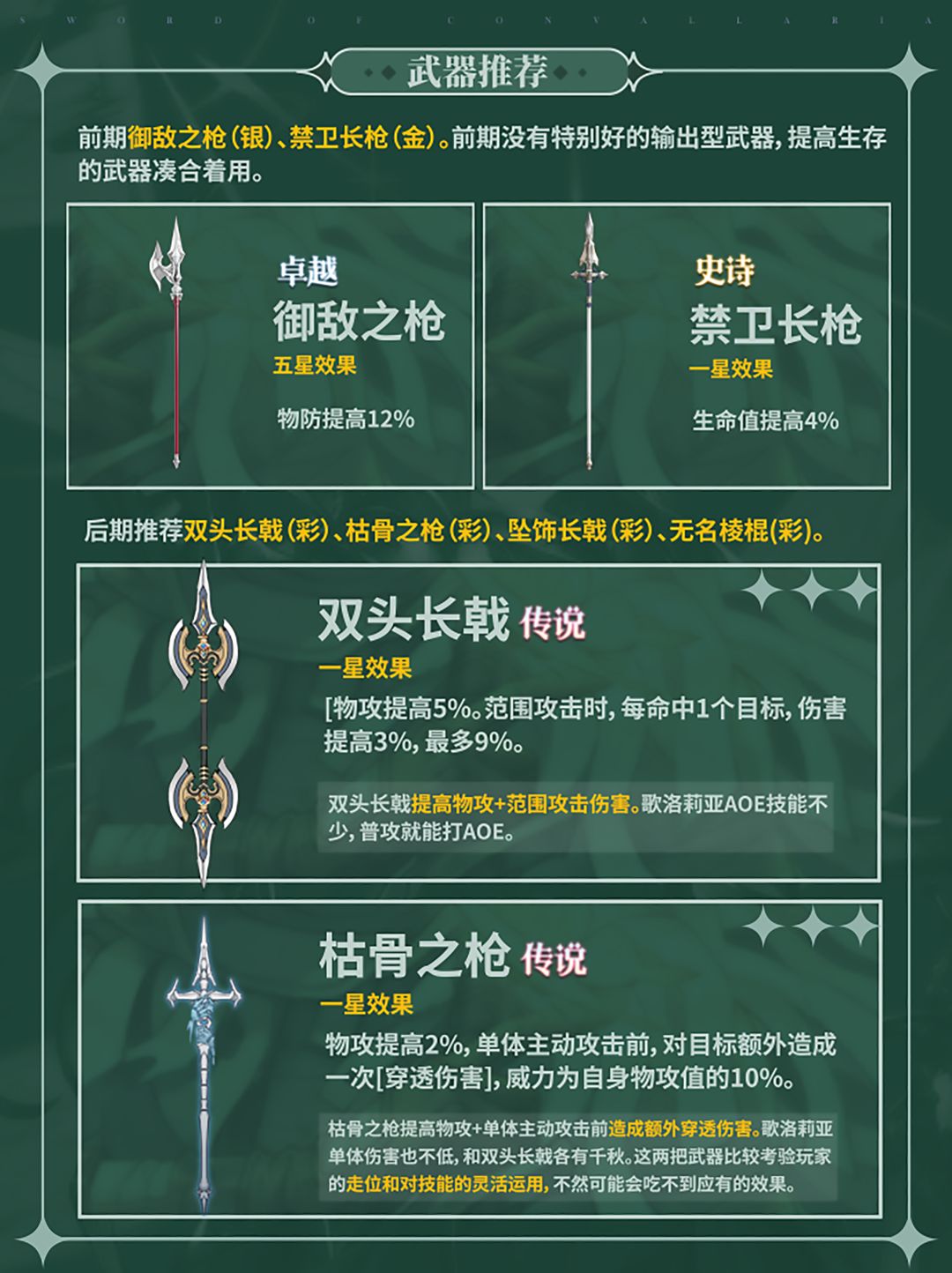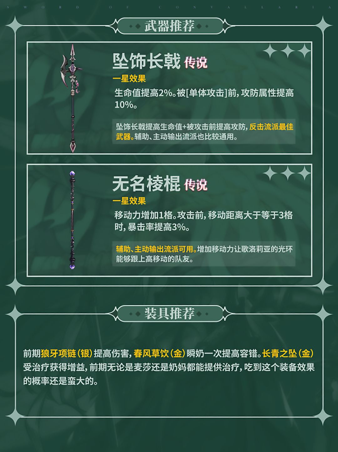 两套技能组能让她在各个环境都游刃有余,不解释的强,开荒时期没有歌洛莉亚会非常影响游戏体验。本篇就为大家带来歌洛莉亚的养成攻略,有错误欢迎大家指正~