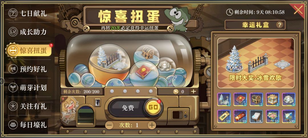 限时活动「惊喜扭蛋」即将同步开启,限时大奖「冰雪欢歌」等着开拓者赢取!