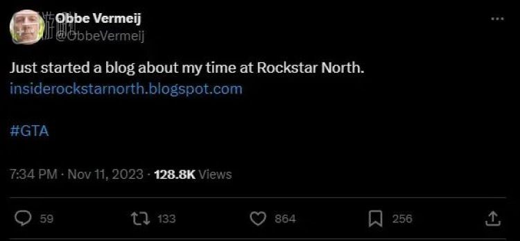 虽然在2009年离开了R星,转去建立自己的游戏公司,但韦尔梅杰一直对自己的老东家和GTA念念不忘。今年的11月11日,韦尔梅杰在X(原推特)上宣布,他将专门开设一个博客,讲述他“在R星北方工作室的时光”。