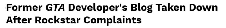 “前GTA开发者博客因Rockstar投诉而被关闭”