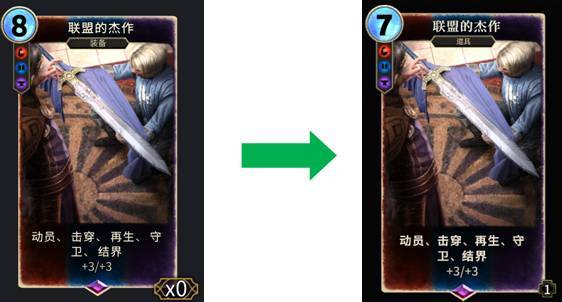 ②卡牌【联盟的杰作】平衡性调整:费用由8下调为7;