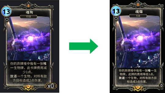 ①卡牌【魂殉】名称调整为【魂爆】,卡牌效果由“对所有敌方目标造成2点伤害”调整为“对所有敌方目标造成3点伤害”;