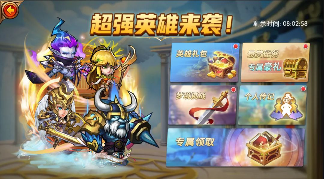 通过召唤排行、七日登陆,英雄庆典等活动,都可以获得不同品质的英雄,快速的创建第一核心团队;