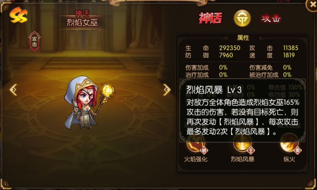这套阵容还是以烈焰女巫为核心,打不死人必连击的效果过于强势,顶的上一些sss英雄的强度了;