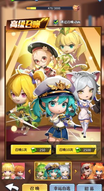 通关1-10后将会解锁酒馆,在酒馆中选择对应的召唤池即可招募慕名而来的英雄们,首次单抽必定获取一名SSR英雄!在团长大人通关2-20后,更是会获得一张幸运自选券,任意50次十连抽,抽到你满意为止。整个召唤池共分为“高级召唤”、“种族召唤”、“友情召唤”三种。