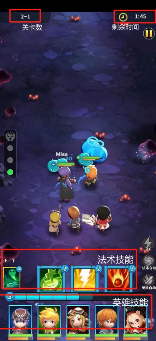 对局中除了英雄技能外,还拥有一套由团长大人自行决定释放时机的法术系统。法术的碎片会在团长大人通过关键关卡后随机获取,收集足够的法术卡牌碎片后即可解锁或升级法术等级。