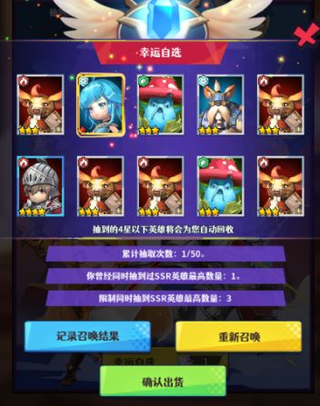 友情召唤为质量一般(2星、3星)的英雄卡池,有概率出现4星SR,抽取需要消耗友情之心。