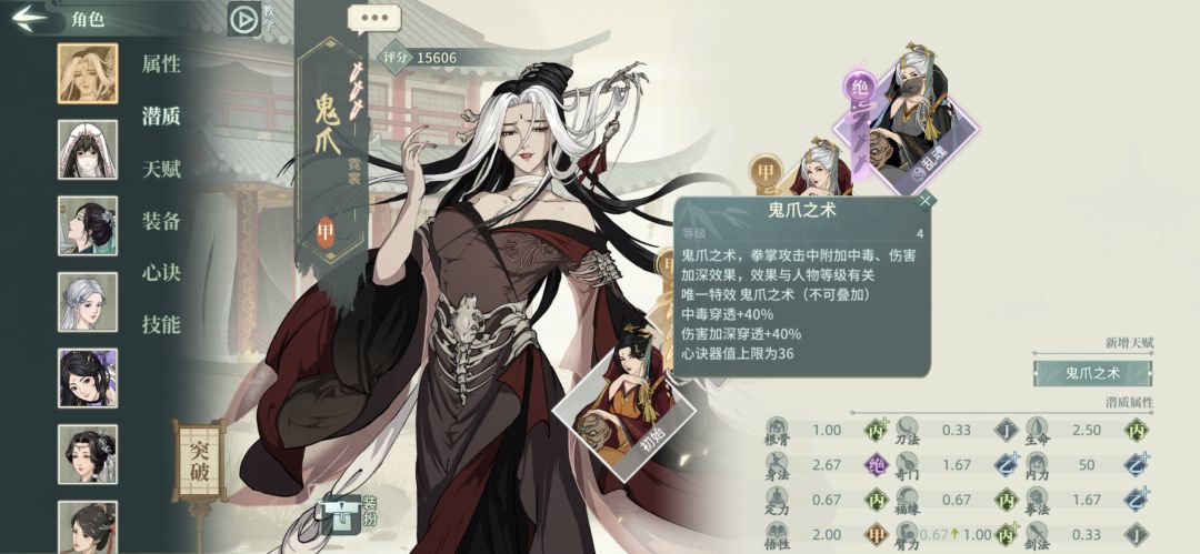 套路细节:1、需要高怒气,沉渊特性是每回合随机刷新一个技能,看脸时刻到了,如果连续2回合3回合都刷新刺杀,如果没怒气你会动不了,重中之重素衣+怒目不可以换,而且如果用的是我图片这个配置,那素衣更加不能换,因为刺杀4怒带来的40%吸血+40%无视护甲,能让残血主角绝地逢生,甚至反败为胜。
