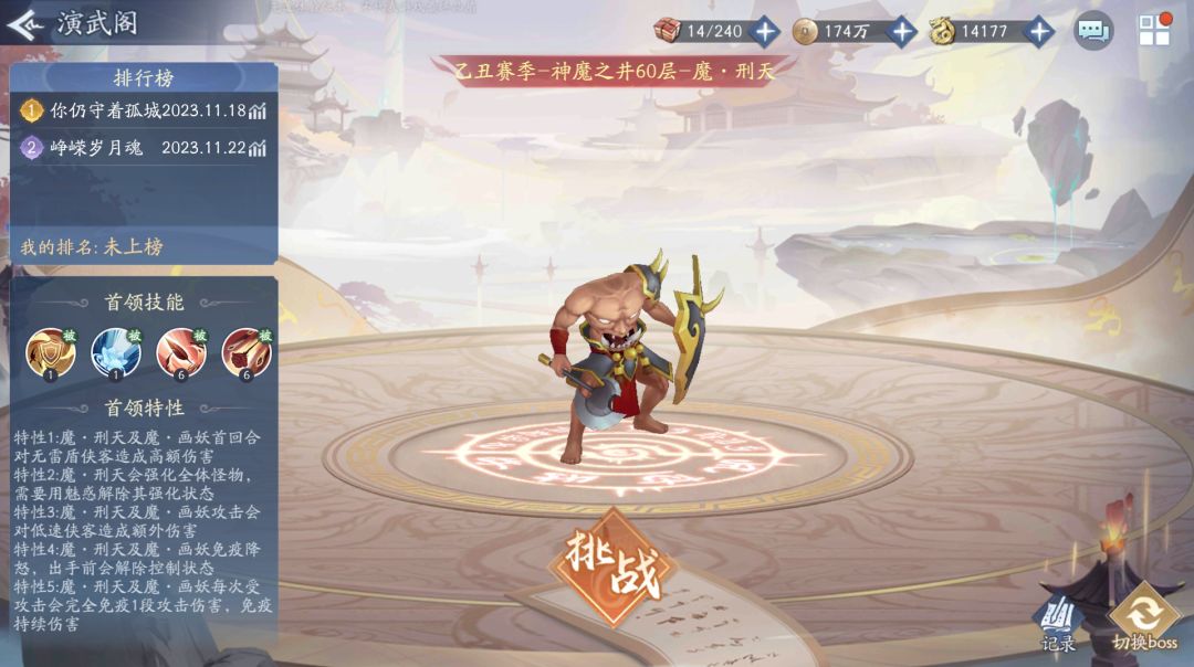 特性四:免疫降怒,解控,这就是恶心的地方,无法控制,同时60层boss的属性是当前侠客(s3满配)的10倍以上。