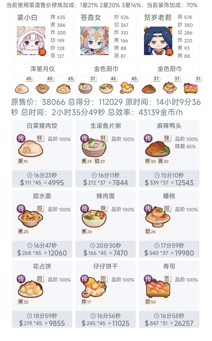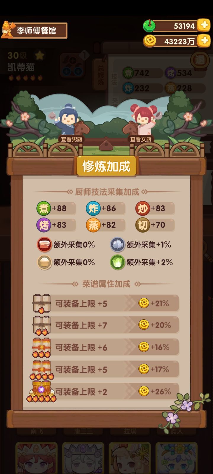 2.厨师技能,厨具技能加成对玉片区仍然有效