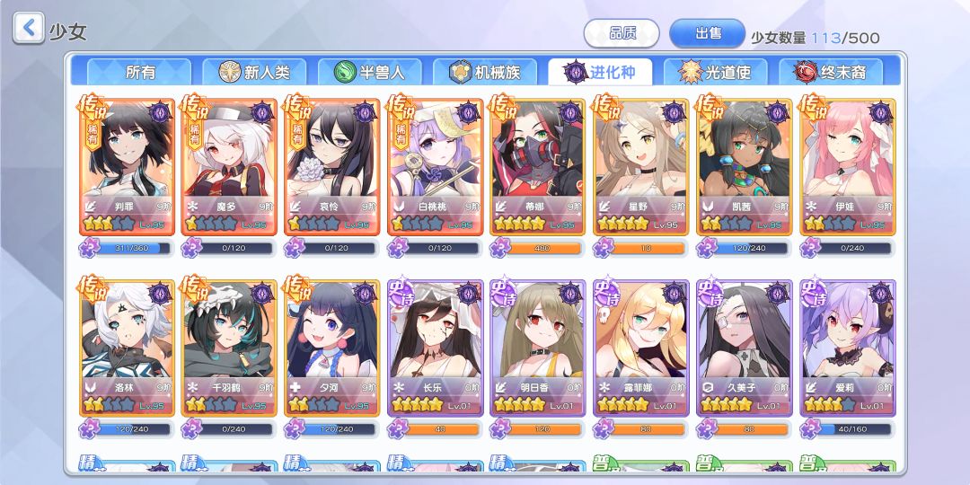 3. 进化族(变异族):成型后以群体dot伤害为主,以星野、蓝宝石(未出)为核心,也常有哀怜反击流的打法。最具特色的种族,集控制、dot、减能、反击机制于一身,pvp很强势,爬塔类的pve(如无限长廊、剥夺之路)也比其它族更有优势。缺点是哀怜薇薇安混合队组合较为奇怪,主流蓝宝石迟迟未出,让人望穿秋水。