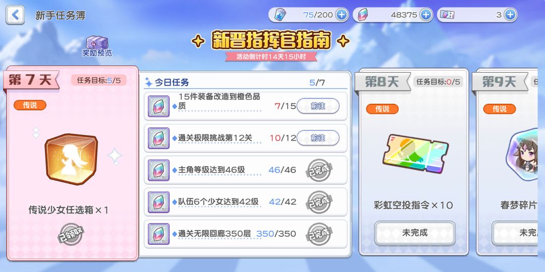 1.完成新手任务(第14天完全开放,第21天关闭)