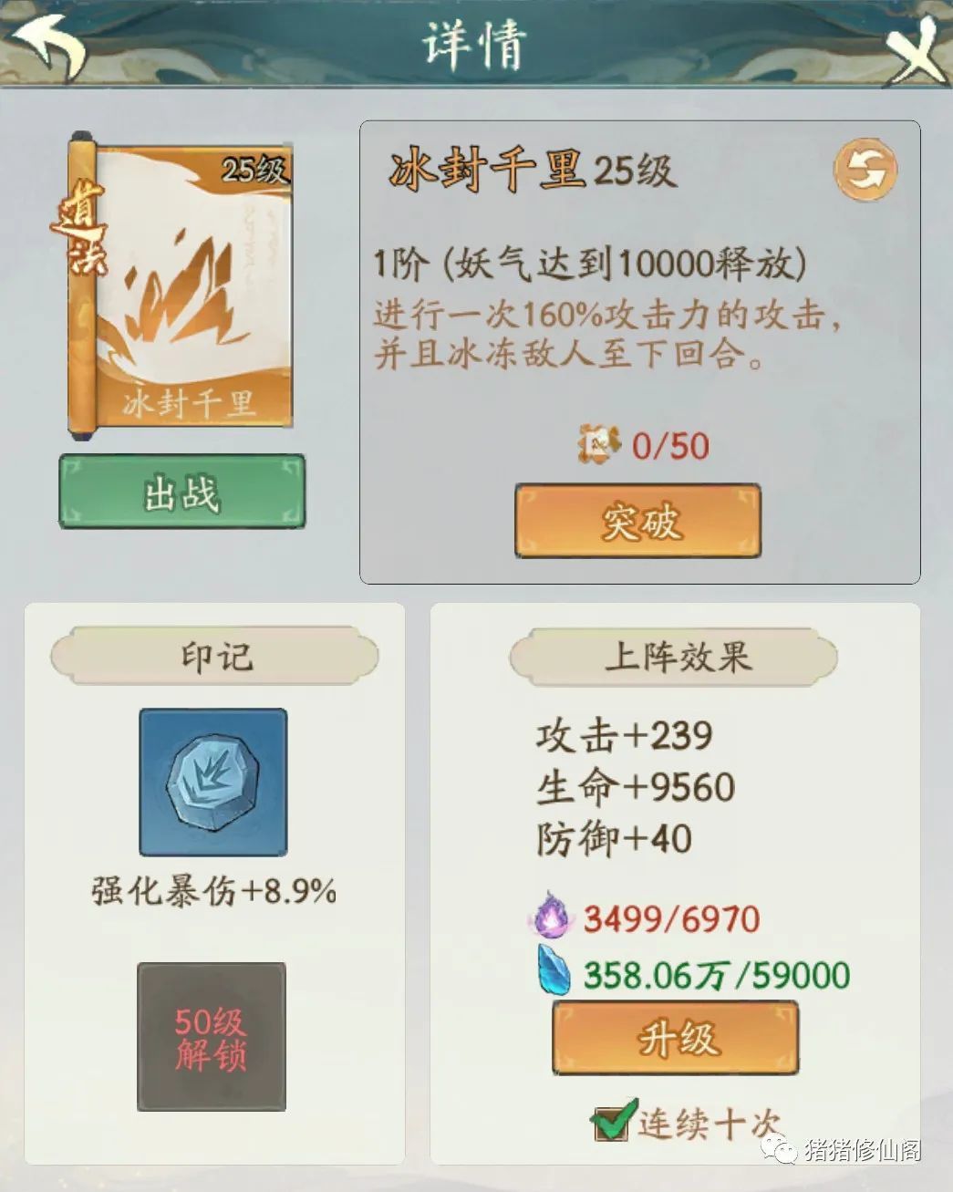 进行一次160%攻击力的攻击,并且冰冻敌人至下回合;印记选择带爆伤印记。冰封千里作为道法神通的搭配,核心在于有着持续性的输出还能够叠加攻击,所以我们不管是从流派角度选择,还是从灵兽方面控制,冰冻至下回合都会让我们更有机会获胜;那么重要的就是冰冻道法触发时,你的伤害是否可以让对方生命值降低到一击致命的地步,让他没有任何喘息的机会。这时候,流派的范围就缩小了。