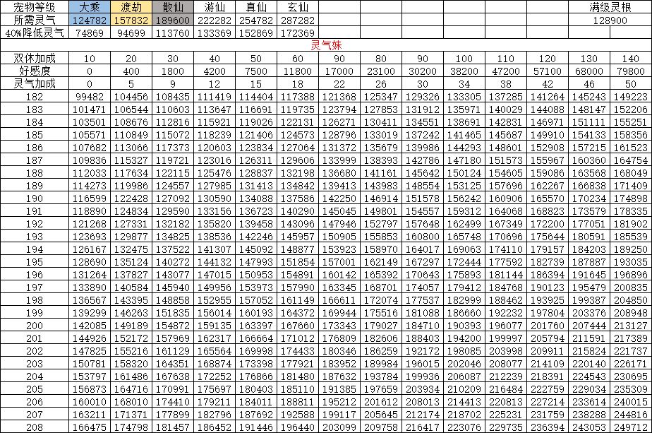 灵气妹除了好感加成灵阵灵气上线,现在还有神兽山可以降低宠物的灵气需求,100级山降低40%