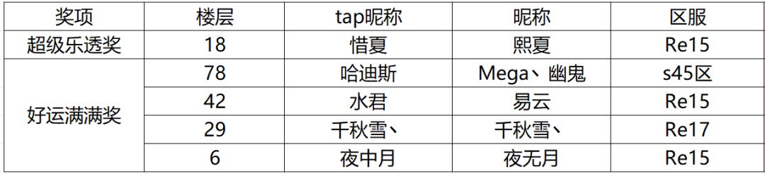 【中奖名单公布】