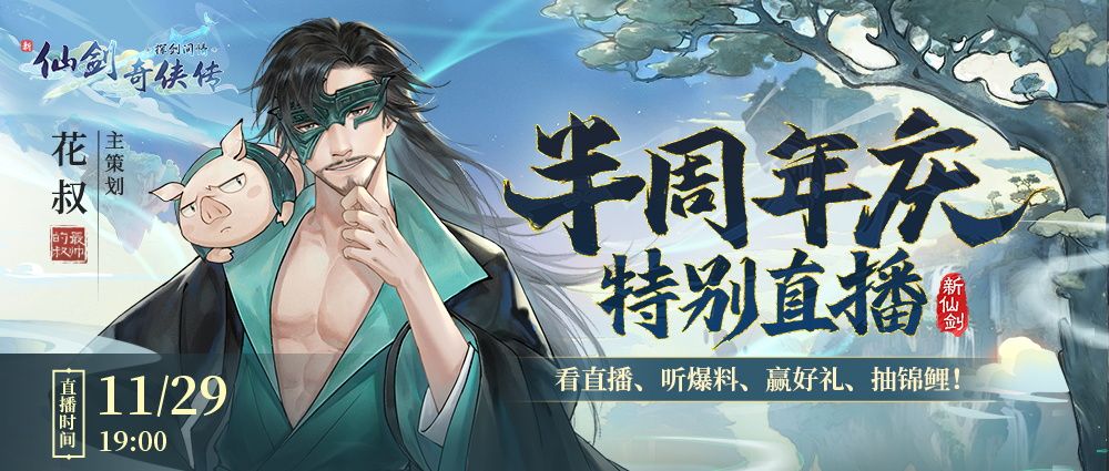 今晚19:00,恭候各位大侠听花叔细细道来,共庆仙剑半周年隆运当头,看大奖究竟花落谁家!